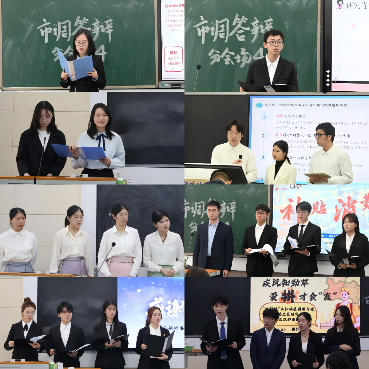 开幕式结束后,比赛正式开始。各参赛团队从调研背景、研究方法、数据分析到实践建议进行了全方位的展示。其中,萝卜快跑智行小队,着眼于武汉市“萝卜快跑”的发展状况,从用户年龄、用户意愿以及运营成本等方面进行分析,为提高“萝卜快跑”的市民接受度提出针对性建议。怦然心动二十岁队,聚焦于Z时代适婚青年婚育意愿状况,通过社会调查与数据建模,深入剖析当代青年的婚育态度与行为逻辑,为应对人口结构变化与社会政策优化提供新思路。正大队面向女性群体,结合“315”分析“她经济”背景下女性卫生巾市场现状及产品发展,从产品质量、消费者特征等角度进行分析统计,为企业提供市场策略建议。