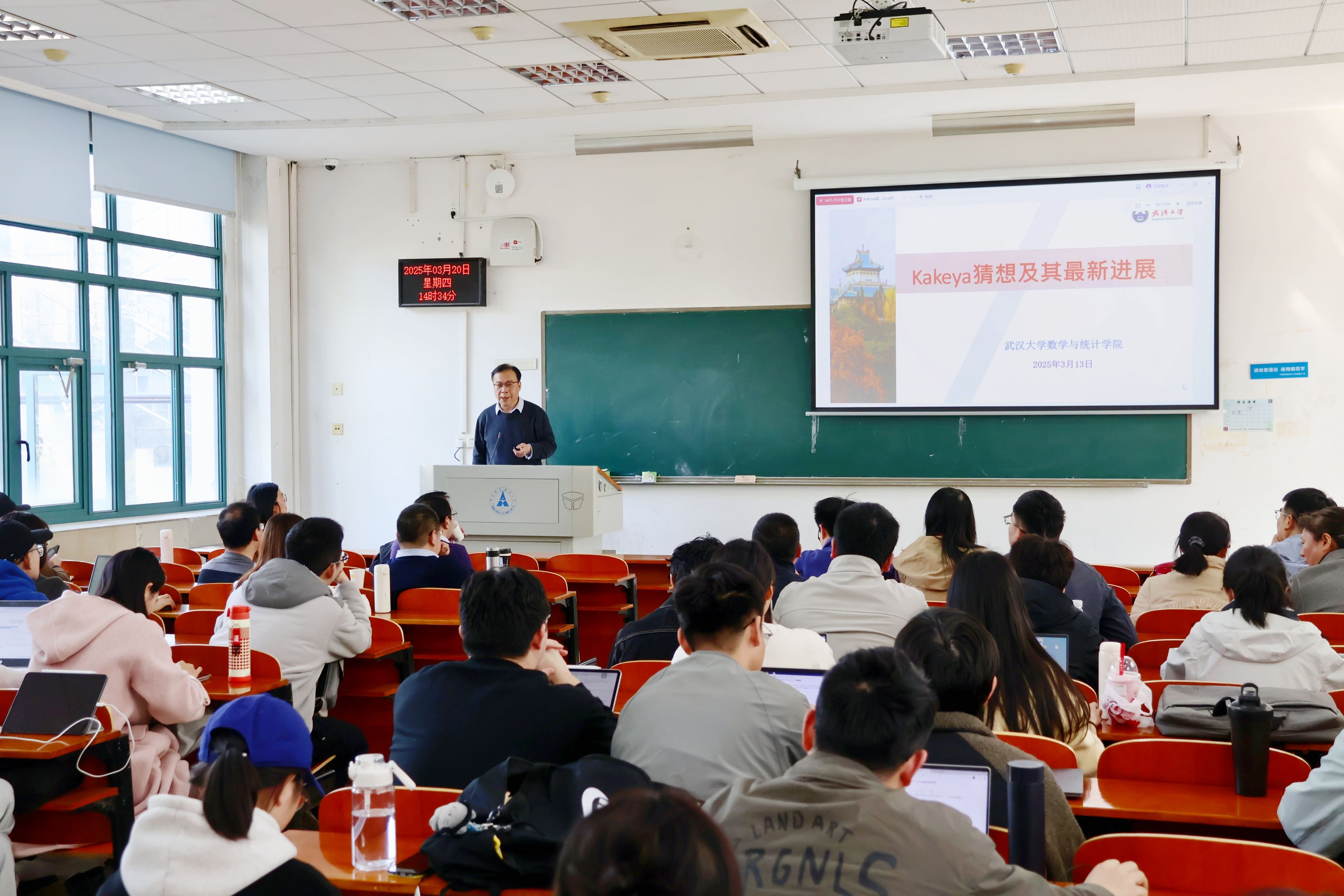 (通讯员 吴志伟 江紫璇 易菲亚)3月20日14时,由统计与数学学院主办的“中南·统数”求真创新论坛(2025年第2期)在文波楼304教室举行。本期论坛特邀华中科技大学吴军教授担任主讲嘉宾,以“Kakeya猜想及其最新研究进展”为主题开展分享,统计与数学学院陈元红老师主持,学院师生积极参与。