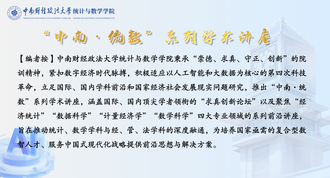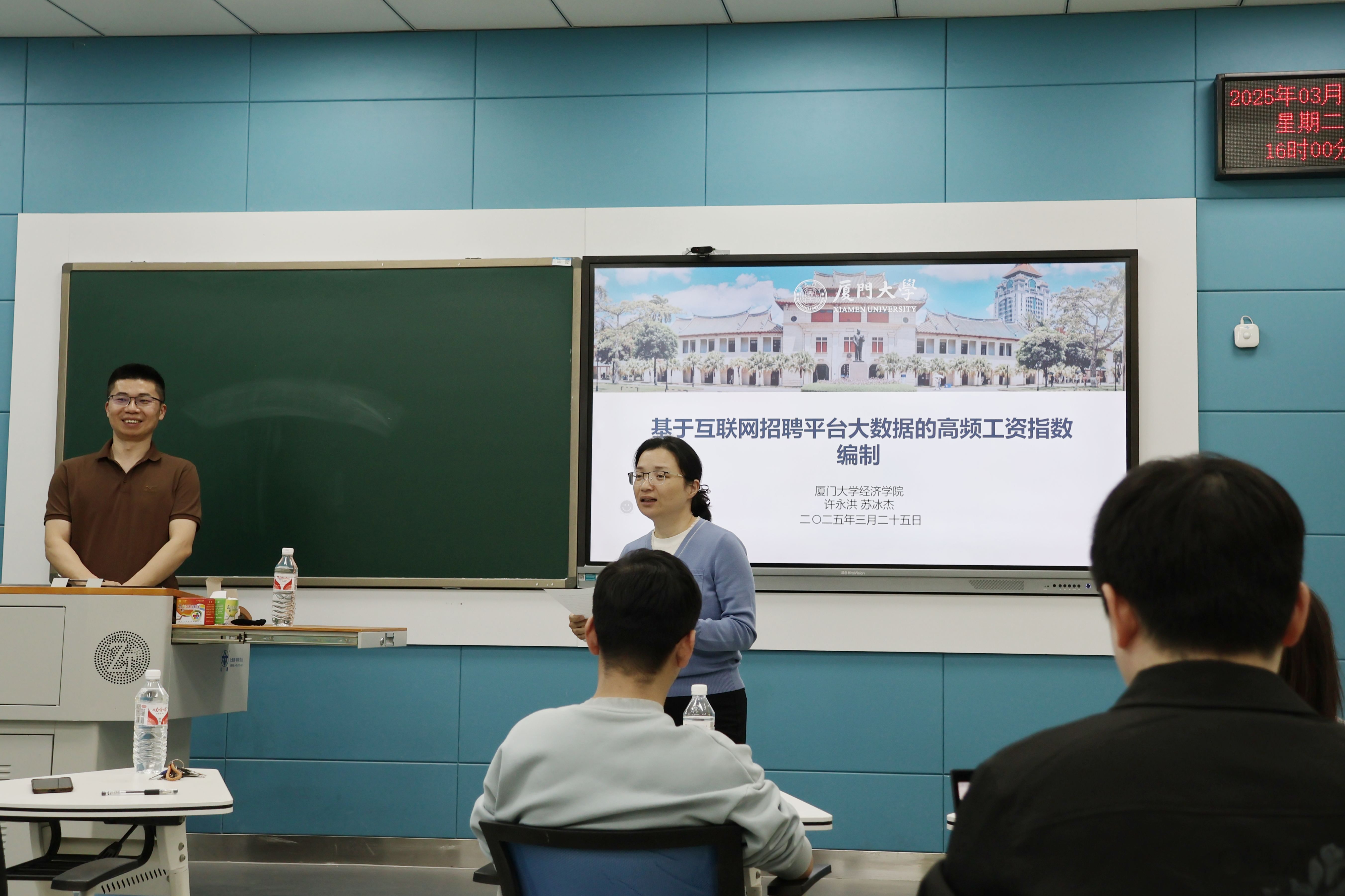 (通讯员 吴志伟 谭哲雨)3月25日16时,由统计与数学学院主办的“中南·统数”经济统计系列讲座(2025年第1期)在文波楼智慧教室203成功举办。本期讲座特邀厦门大学许永洪教授围绕“基于互联网招聘平台大数据的高频工资指数编制”主题开展前沿学术分享,统计与数学学院副院长王艳清教授主持,学院师生积极参与。