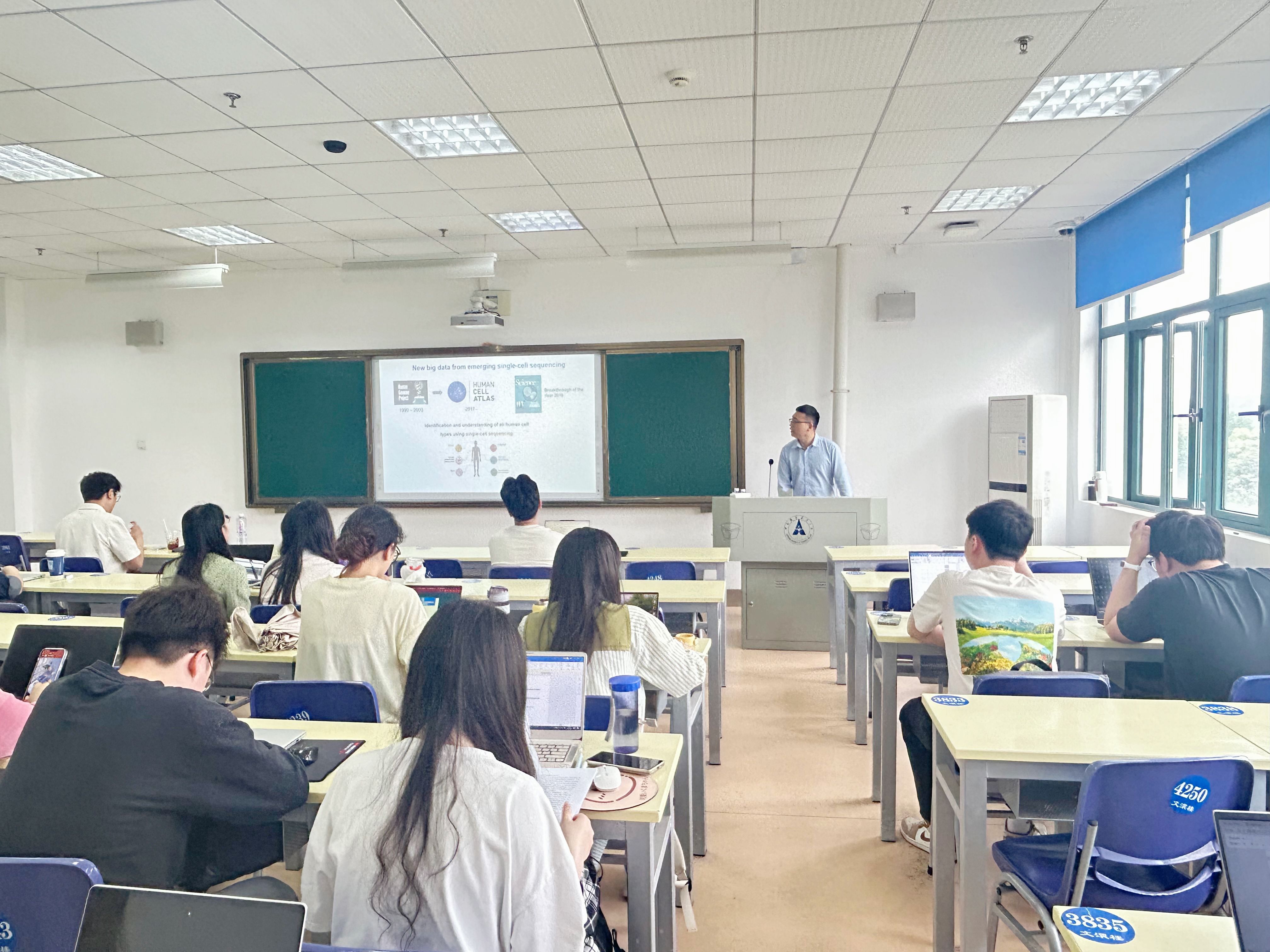 (通讯员 吴志伟 江紫璇)4月24日10时,由统计与数学学院主办的“中南·统数”数据科学系列讲座(2025年第11期)在文澴楼421教室成功举行。本期讲座由武汉大学教授金锁钦担任主讲嘉宾,以“Intelligent analysis of tissue structureand multicellular communication fromspatial multiomics data”为主题开展前沿学术分享,统计与数学学院孙晓波副教授主持,学院师生积极参与。