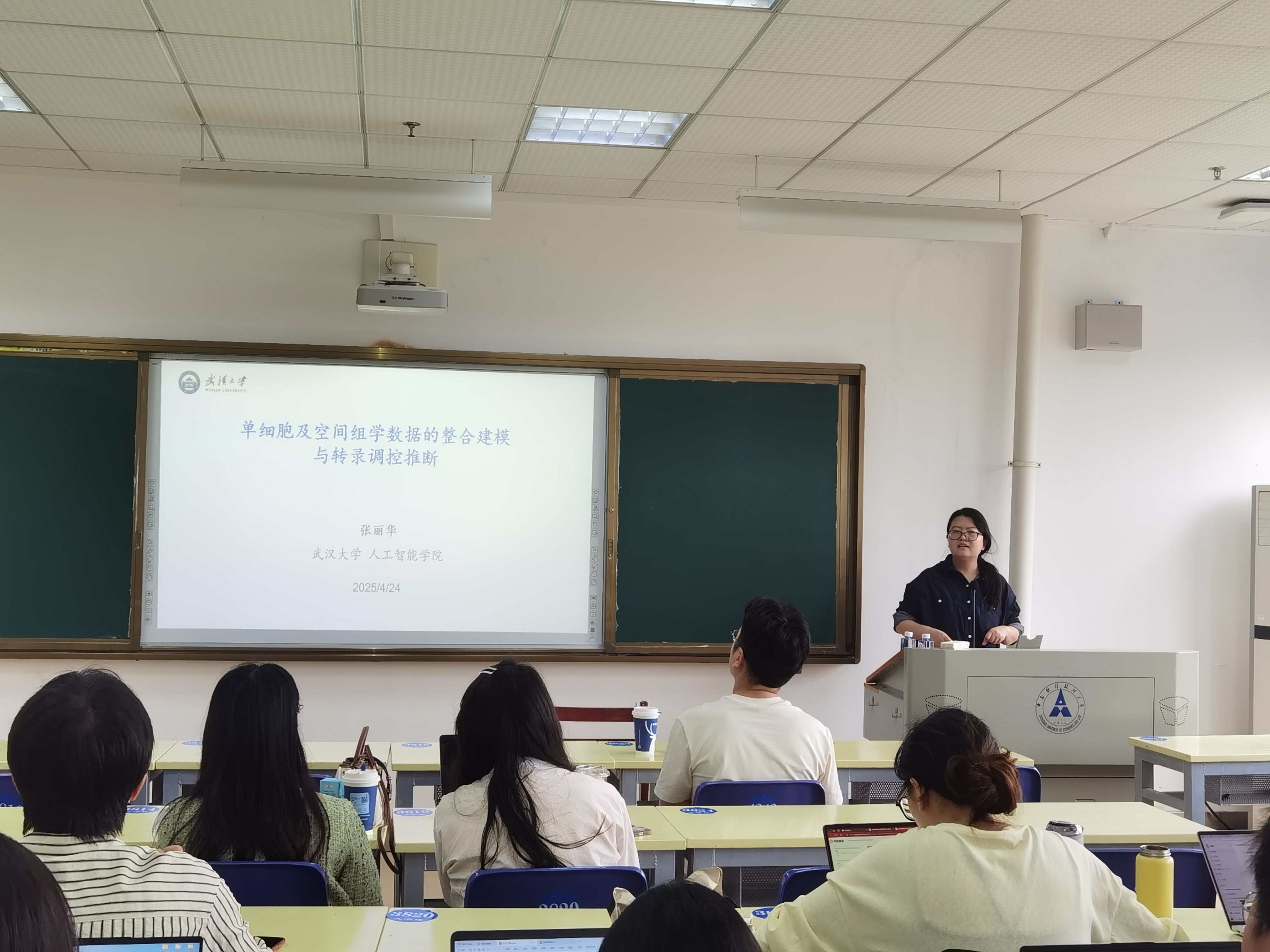(通讯员 吴志伟 周博文)4月24日上午11点,由统计与数学学院主办的“中南·统数”数据科学系列讲座(2025年第12期)在文澴楼421教室成功举行。本期讲座由武汉大学张丽华教授担任主讲嘉宾,以“单细胞及空间组学数据的整合建模与转录调控推断”为主题开展前沿学术分享,统计与数学学院孙晓波副教授主持,学院师生积极参与。
