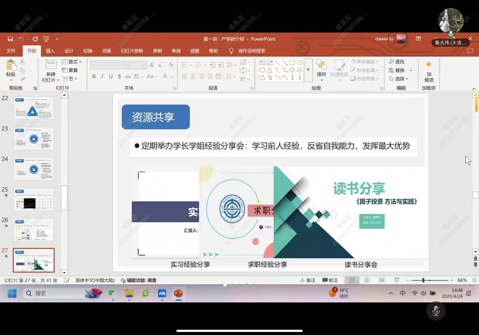 (通讯员 吴志伟 易菲亚)4月26日下午,统计与数学学院线上举办“统计专业学生学业规划与就业能力培养”专题讲座,本次讲座由大连理工大学鲁大伟教授主讲,统计与数学学院副院长王艳清教授主持,学院师生积极参与。