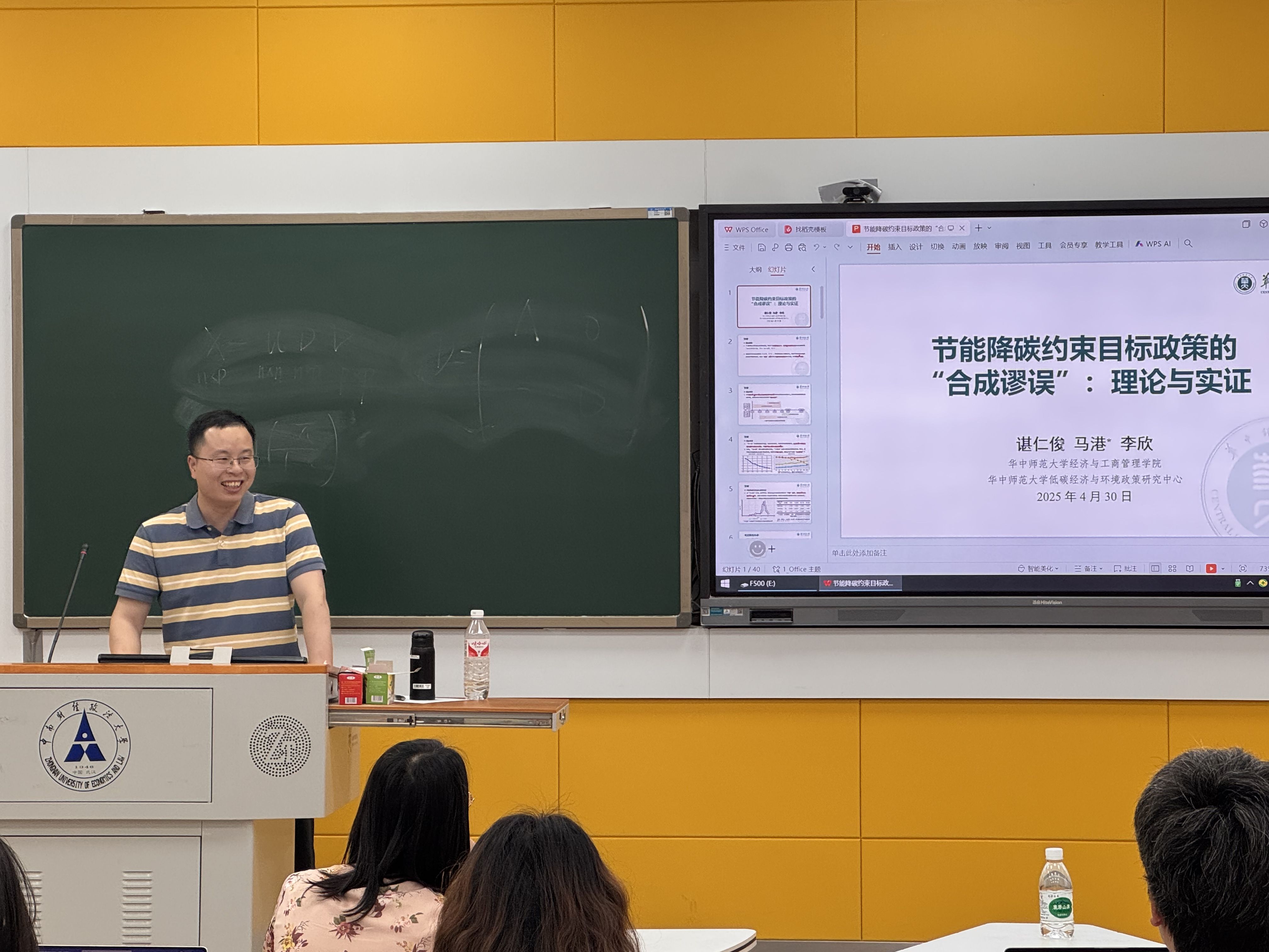 (通讯员 吴志伟 原昕)4月30日下午4点,由统计与数学学院主办的“中南·统数”计量经济学系列讲座(2025年第3期)在文波楼智慧教室204成功举办。华中师范大学经济与工商管理学院谌仁俊教授应邀以“节能降碳约束目标政策的‘合成谬误’:理论与实证”为主题开展前沿学术分享,本期讲座由统计与数学学院徐娟教授主持,学院师生积极参与。