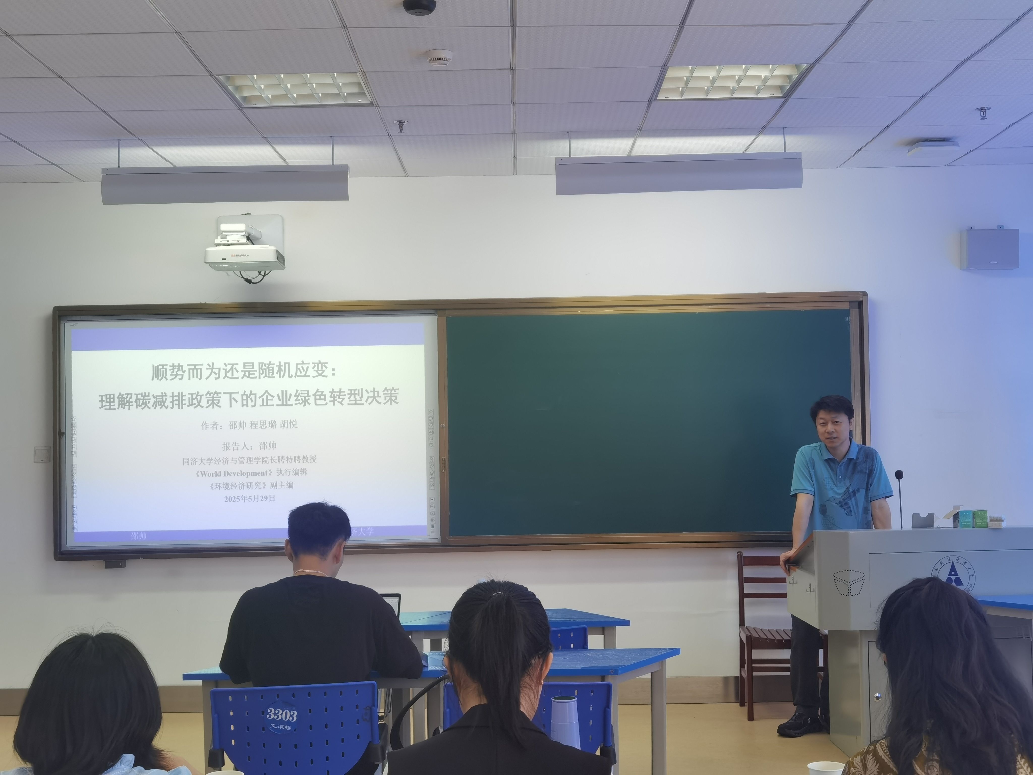 (通讯员 吴志伟 周博文)5月29日,由统计与数学学院主办的“中南·统数”计量经济学系列讲座(2025年第4期)在南湖校区文澴楼403成功举行。同济大学邵帅教授应邀以“顺势而为还是随机应变:理解碳减排政策下的企业绿色转型决策”为题开展学术报告。本期讲座由统计与数学学院徐娟教授主持,学院师生积极参与。