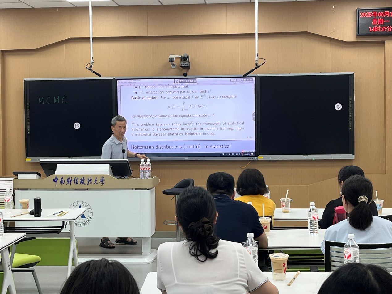 (通讯员 吴志伟 孙雯宇)6月16日14点30分,由统计与数学学院主办的“中南·统数”求真创新论坛(2025年第10期)在文波楼智慧教室205成功举办。哈尔滨工业大学讲席教授吴黎明应邀以“Sampling high dimensional Boltzmann distributions and applications in machine learning”为主题开展学术前沿分享,本期讲座由统计与数学学院胡淑兰教授主持,学院师生积极参与。
