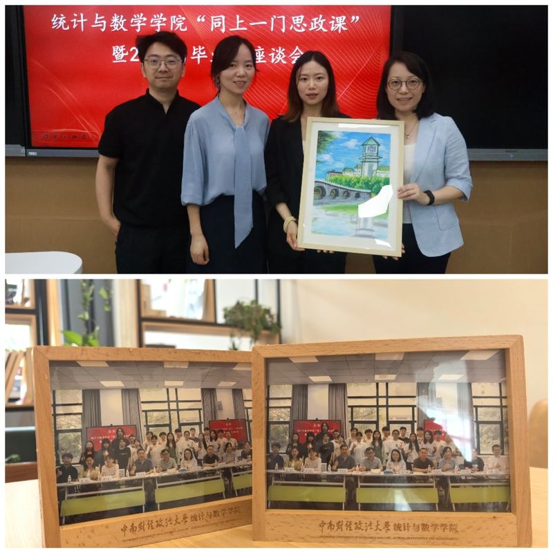 座谈会尾声,学院向毕业生赠送定制纪念品——打印的现场合影照片。统计2101班杨心怡同学向学院回赠亲手绘制的文波楼画作,以艺术形式真挚表达对学院悉心培育的感恩之情。