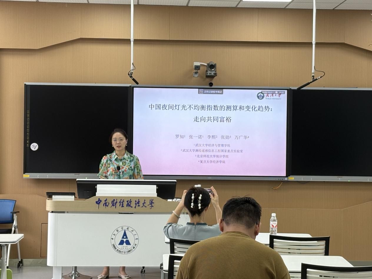 (通讯员 吴志伟 谭哲雨)6月26日10时,由统计与数学学院主办的“中国夜间灯光不均衡指数的测算和变化趋势”学术报告讲座在文波楼智慧教室205成功举办。本次讲座由武汉大学教授罗知主讲,统计与数学学院张璇教授主持,学院师生积极参与。