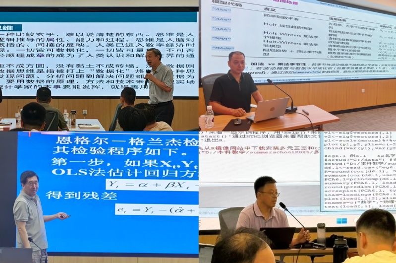 三是多元统计与预测模型进阶: 张虎教授深入讲解主成分分析与指标构建、因子分析与聚类应用等多元统计知识;李占风教授系统讲授时间序列分解法与趋势外推法、ARIMA模型建模与预测等预测与分类模型;赵目副教授、金林副教授分别负责上述方法总结强化、案例实操与R代码实现,全面提升学员处理复杂数据和构建预测模型的能力。