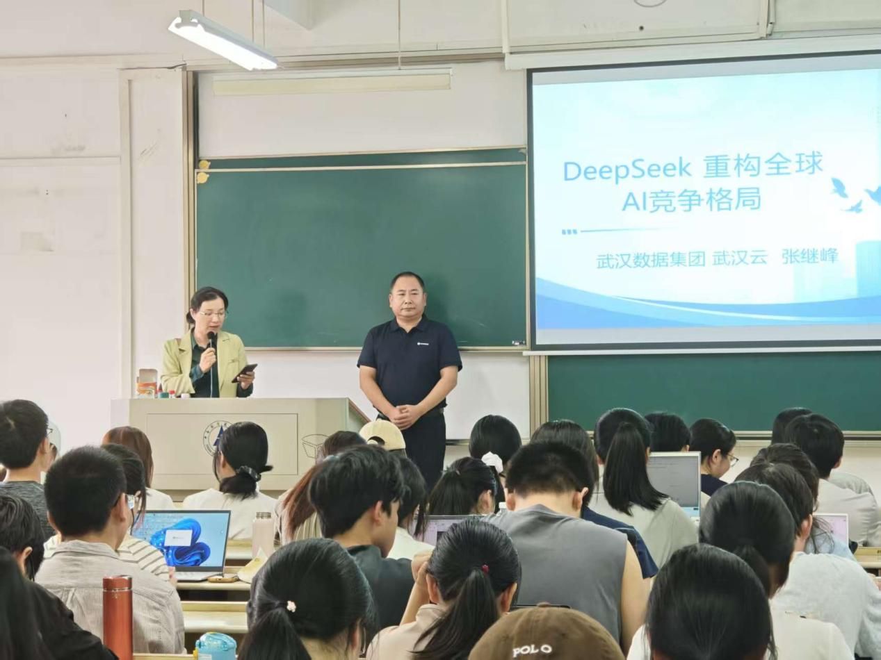 (通讯员 吴志伟 李淑颖)为深化产学研融合、搭建跨学科交流平台,统计与数学学院推出“大数据行业专家讲堂”系列讲座,邀请行业专家进校园分享一线实战经验、剖析前沿趋势,助力学生洞察行业生态、明晰职业发展路径。9月30日,武汉数据集团武汉云计算科技有限公司董事长助理、科创部总监张继峰受邀围绕“DeepSeek重构全球AI竞争新格局”作主题报告,讲座由副院长王艳清教授主持。