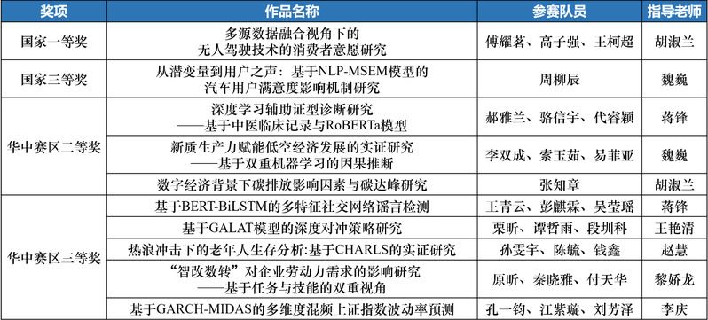 魏巍副教授指导的作品《从潜变量到用户之声:基于NLP-MSEM模型的汽车用户满意度影响机制研究》荣获国家级三等奖。同时,我院在华中赛区合计收获八项奖项。
