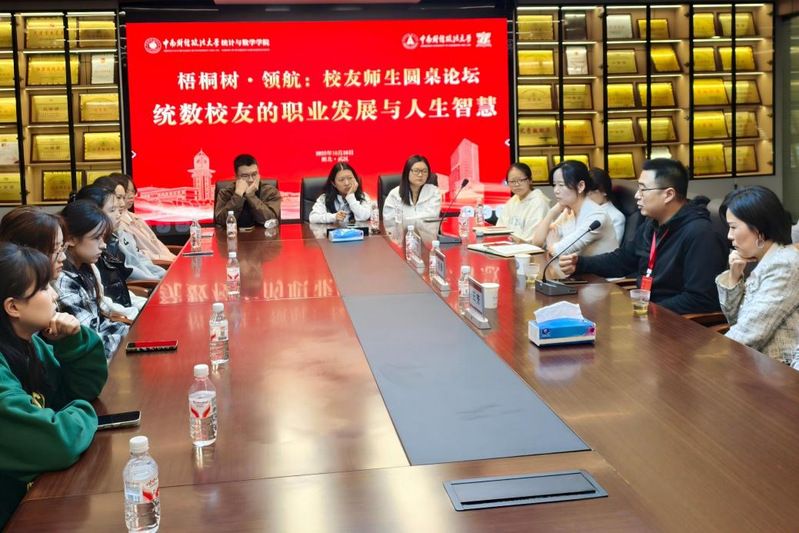 当日下午,“统数校友的职业发展与人生智慧”圆桌论坛在双创楼613会议室举行。上海大正市场研究有限公司副总经理刘强、蚂蚁科技集团研究所研究总监王芳结合行业实践,分享数据分析与金融科技领域的职业经验,与师生深度互动,现场气氛热烈。