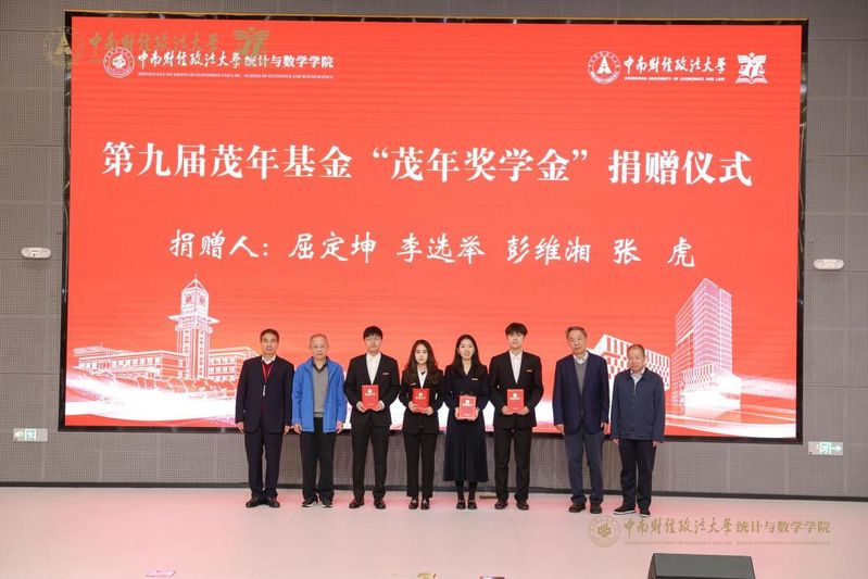 校友基金捐赠仪式上,屈定坤、李选举、彭维湘、张虎四位教授共同向学院捐赠“茂年奖学金”并向本届获奖学生代表颁发荣誉证书。该基金九年来已累计捐赠90万元,持续助力学子科研创新。94级统计专业校友设立“统计94级校友基金”,吴华、刘培龙作为代表现场上台捐赠,展现了校友群体的凝聚力。本届校友会名誉会长、65级校友、原中南财经大学副校长王寿安教授虽未能亲临,仍专门致信并捐赠,支持学院教育事业发展。