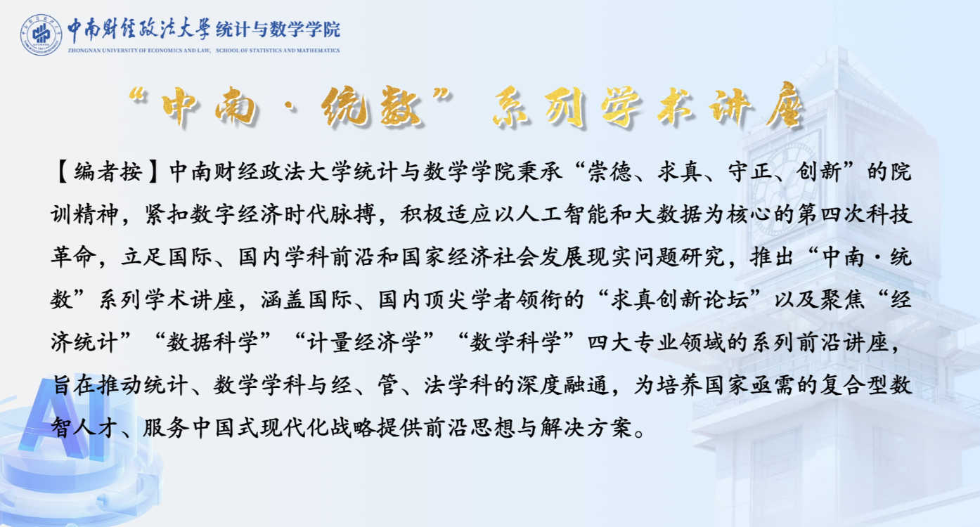 本期讲座分享的研究成果聚焦高维数据中的变量相关性难题,为我院师生提供了宝贵的启发和指导。