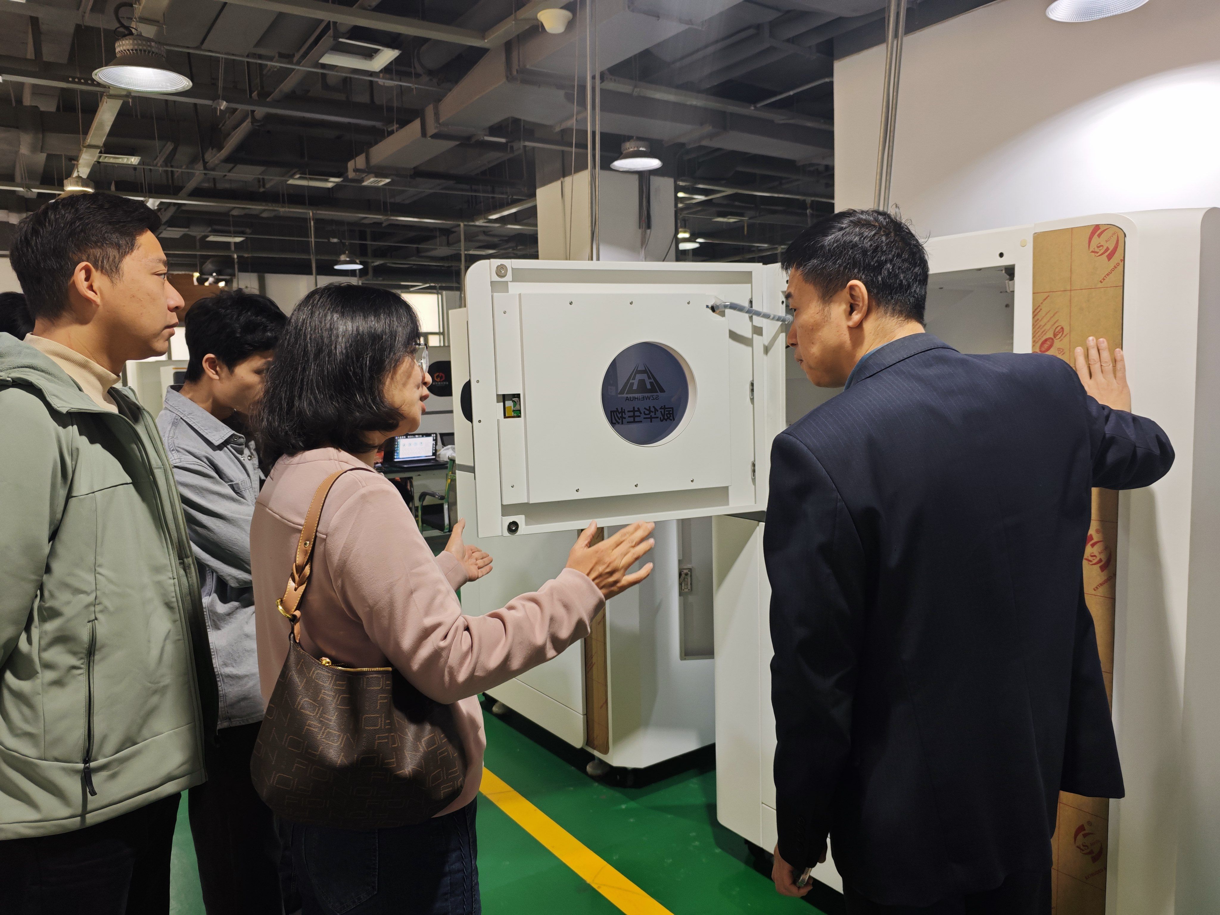 必盈生物副总经理黄加涛对学院一行的到来表示热烈欢迎并带领老师们参观制造车间和展厅,介绍了3D外固定打印系统等设备的核心技术和公司取得的科技成果,并邀请我院教师现场体验支具制作流程。