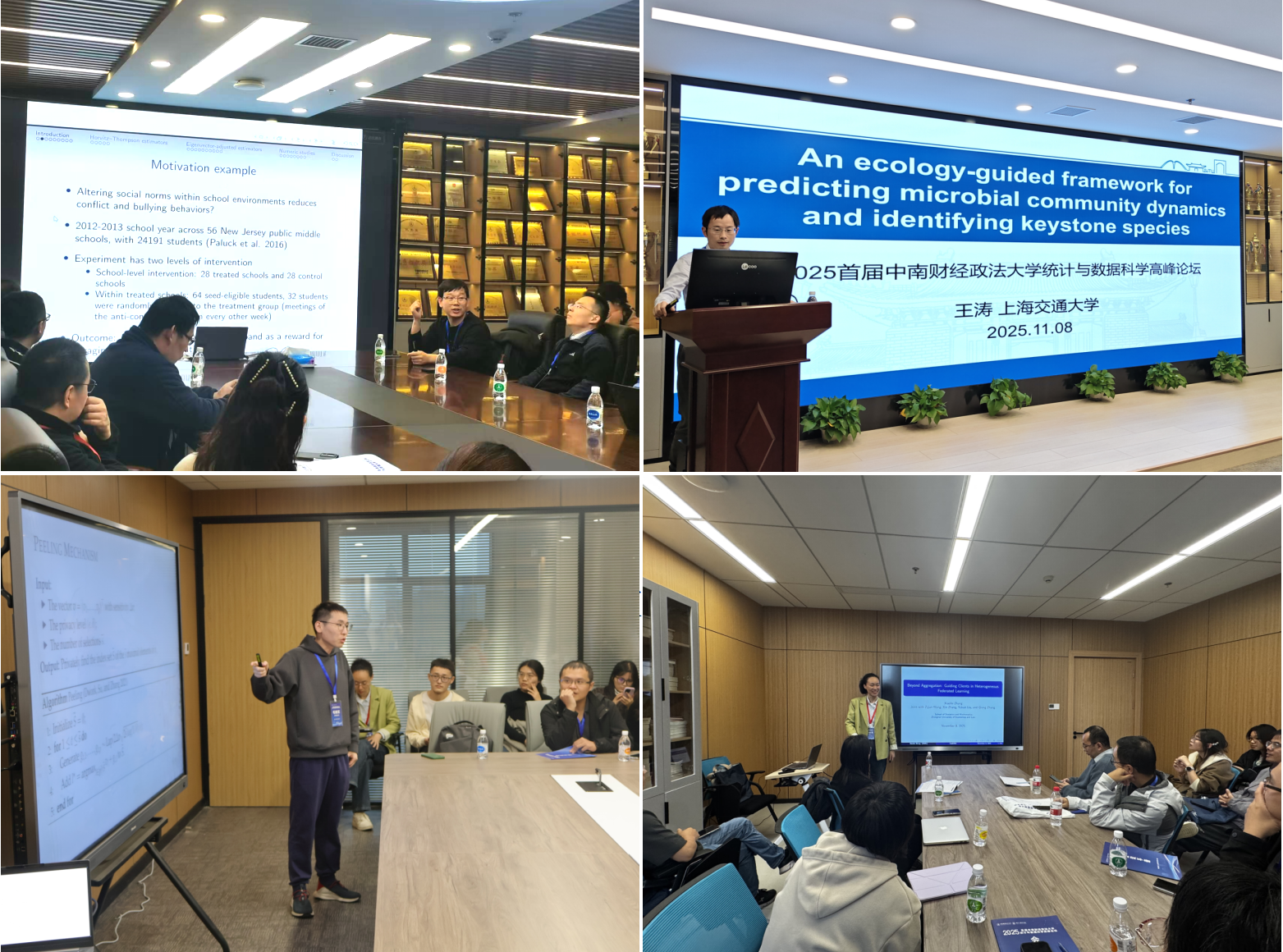 本届高峰论坛的筹备召开,正值学校全面贯彻落实党的二十届四中全会精神、锚定“十五五”规划发展的重要阶段,也是统数学院响应教育强国建设、推进高质量发展的改革攻坚期,论坛旨在搭建高水平学术交流平台,汇聚学科资源,推动统计学与数据科学、人工智能、经济学、管理学等学科的交叉融合。未来,学院将进一步绘制好学科发展地图,强化学术交流与合作,为推动统计与数据科学事业的繁荣发展作出新的更大贡献。