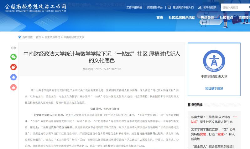 5月12日,全国高校思想政治工作网以《米兰电竞·(中国区)统计与数学学院下沉“一站式”社区厚植时代新人的文化底色》为题,报道推介我校统计与数学学院——“一站式”学生社区的文化育人典型经验。全文如下。