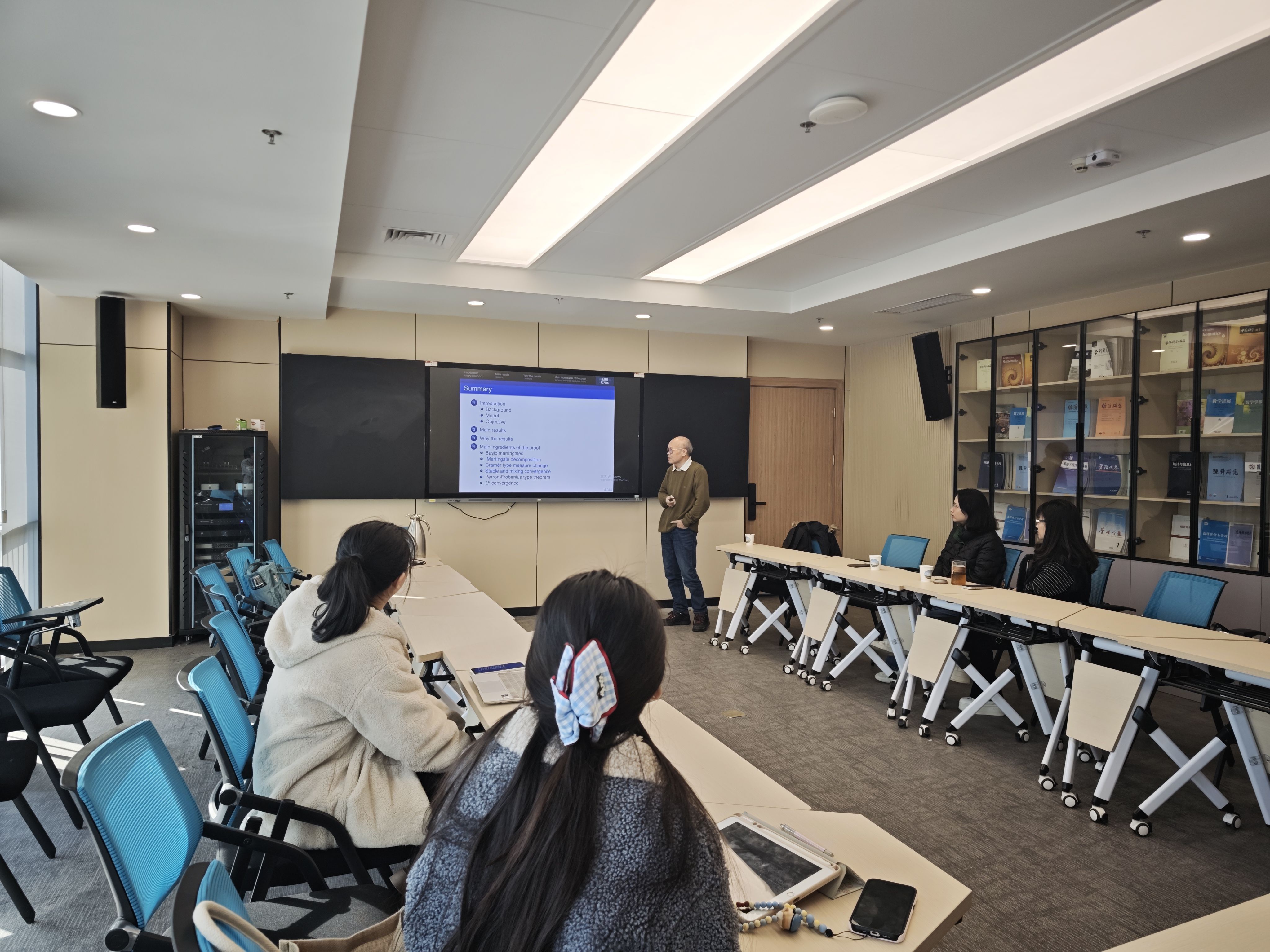 本次讲座聚焦概率论前沿课题,理论体系严谨、推导过程深入,引起了在场师生的强烈兴趣。在交流环节,与会师生围绕报告内容与刘全升教授进行了深入的讨论,现场学术氛围浓厚,交流深入,为后续研究提供了有益的思路与方向。