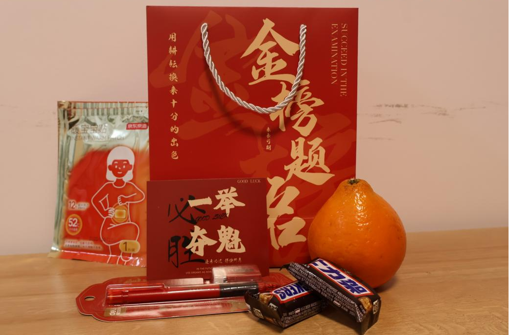 学院延续温情传统,将满满期许藏于细节之中:饱满的橙子承载“心想事‘橙’”的美好祝愿,醇香巧克力寓意“巧”胜难关、“力”拔头筹,暖宝宝寄托寒冬暖心、蓄力冲刺的殷切期盼,更有师弟师妹手写的百余张贺卡,字里行间满是“学长学姐加油”“愿你笔锋所至皆心之所向”的真挚祝福。活动现场,伊帕尔古丽·吐尔孙江逐一为备考学子递送礼袋,细致叮嘱大家合理规划冲刺阶段作息,保持平稳心态应对考试,鼓励学子们以自信姿态奔赴考场。