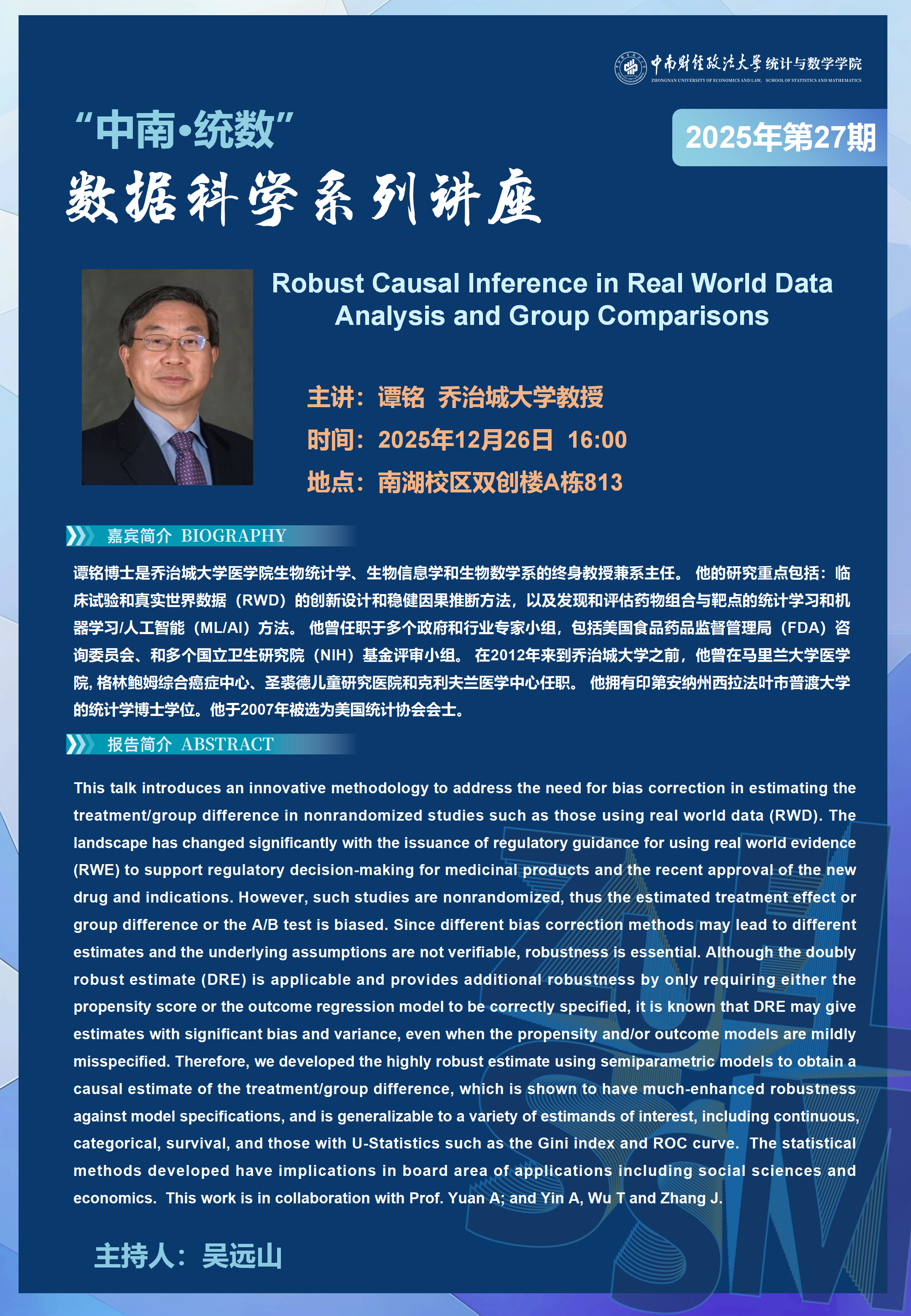 “中南·统数”数据科学系列讲座(2025年第27期)