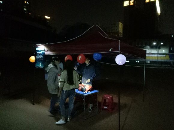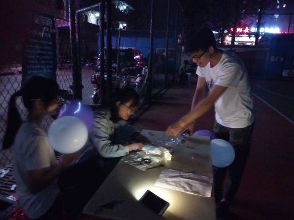 临近傍晚的大运场,很多人就被发光气球和荧光手环吸引而来,甚至许多附近居民也一起参加了我们的活动。