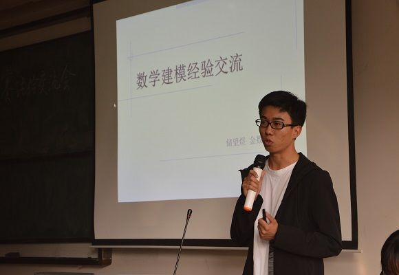 肖微微、张晴雯围绕组队选择、选题方向等方面,介绍了她们参加“博文杯”和“大学生创新创业训练计划项目”的经验。储望煜则对全国大学生数学建模竞赛的资料获取、论文撰写等方面进行了着重分析。他们所提到的各个细节都为同学们今后参赛扫除了不少障碍。