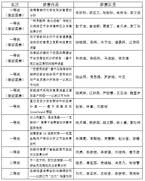 比赛经过现场陈述、展示和答辩环节,经大赛评审委员会现场评审、打分,最终评出省一、二、三等奖以及晋级国家总决赛的9支队伍。我校12支参赛队伍的具体获奖情况如下: