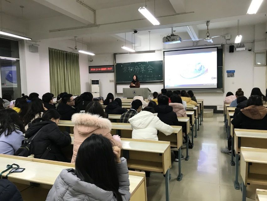 随着高等教育的大众化,高校毕业人数再创新高,就业市场情况不断严峻,学生应该尽快提升自己适应外部环境的能力,积极地对待外边的环境。为了促进学院对于研究生就业指导工作的关注与落实,2018年12月14日晚上,由我院研究生会举办的求职经验分享会活动圆满落幕,本次讲座邀请到我院4位经验丰富4位优秀的师兄师姐来分享职场信息,来帮助我院子分析就业形势、熟悉招聘流程、提高就业能力,如何找到好offer。