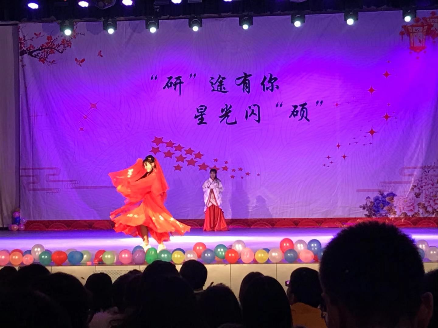 2018年12月29 日晚7点,由统计与数学学院研究生会、信息与安全工程学院研究生会、法律硕士教育中心研究生会、马克思主义学院研究生会与哲学院研究生会五院联合举办的“‘研’途有你,星光闪‘硕’”元旦晚会于我校南湖会堂举办。老师同学们欢聚一堂,喜迎元旦,共享美轮美奂的晚会盛宴。