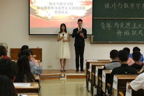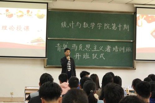 2019年11月10日,统计与数学学院第十期青年马克思主义者培训班开班仪式在首义校区文泽303教室成功举行。本次开班仪式到场的嘉宾有统计与数学学院党委副书记王建荣老师,2019级预科班辅导员陈盈老师,分团委副书记胡珏以及学生会主席李涵。