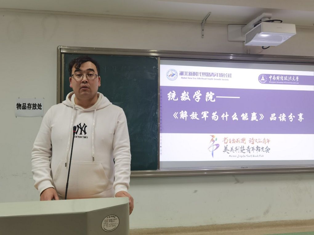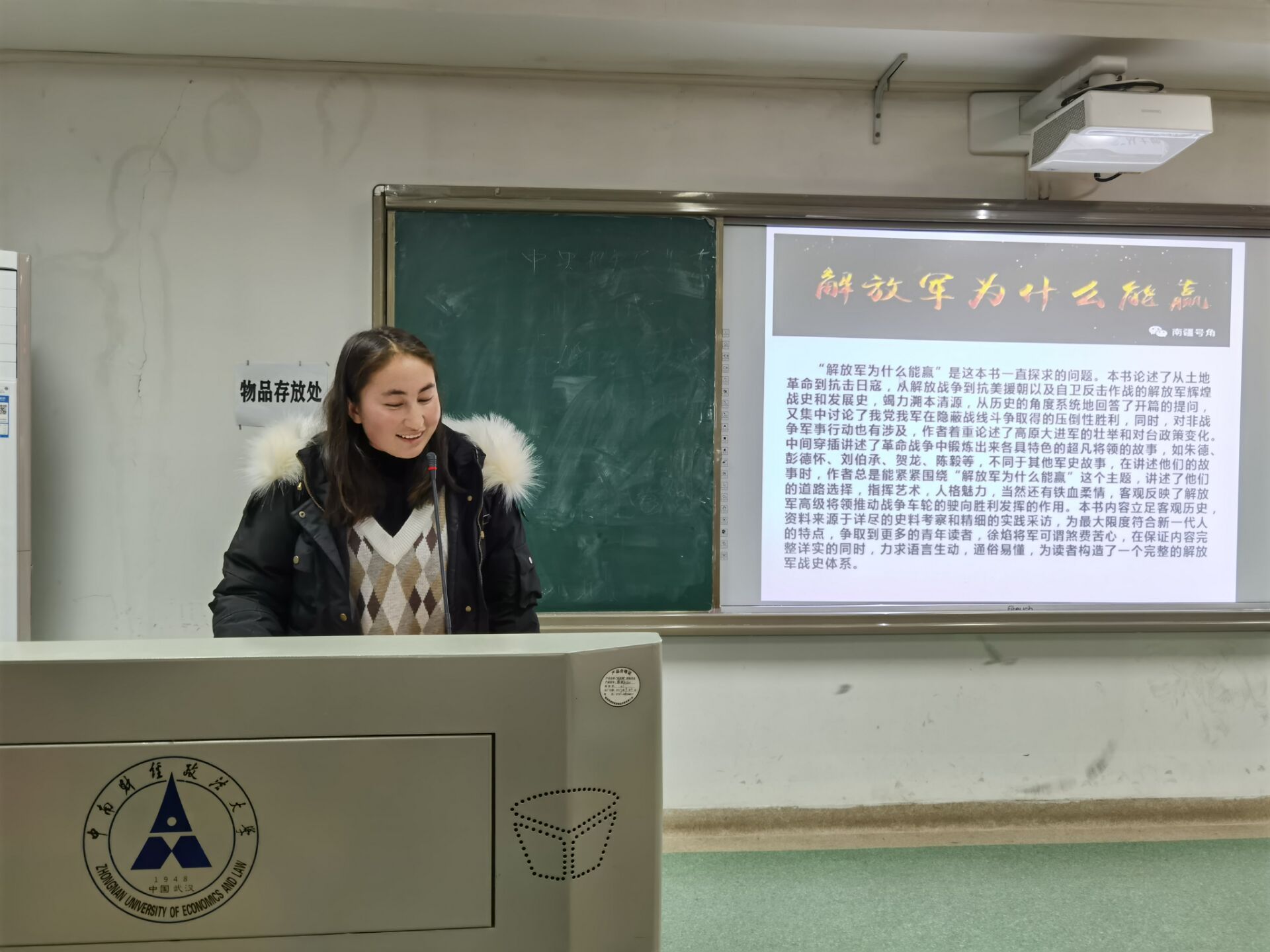 随后,同学们开始进行读书分享。精心准备了PPT,分享自己读这本书的心得感悟,同学们都表示自己从这本书中学到了很多,大家都深刻了解到解放军为什么能赢的重要原因,以及我军一路走来的军史——从最初的星星之火,历经长征,敌后抗日,解放中国,保家卫国,一步步的成为了一支强大的军队。