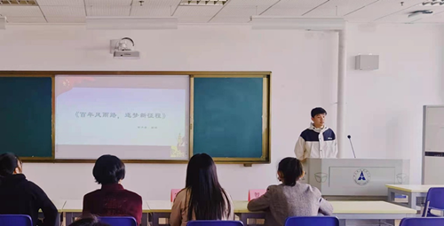 活动伊始,主持人宣读比赛规则。之后,参赛同学按照抽签顺序,分别登台进行了精彩的演讲,结合自身的学习、生活、实践经历,阐述对习近平新时代中国特色社会主义思想和党的十九大精神的感悟,歌颂党、歌颂祖国,抒发爱国爱党爱校情怀,以实际行动庆祝建党100周年。参赛选手们或热情洋溢,或激昂慷慨,或感人至深,充分展现了自己的演讲才能。经过一番激烈的角逐,刘嘉颖同学荣获比赛一等奖,朱弈霏和李成同学荣获比赛二等奖,张潆升、翁诗雨、况明月、张奎和谢枫5名同学荣获比赛三等奖。