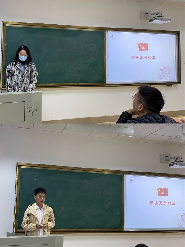 第二部分是关于王玉泽同志和侯琬玥同志的转正问题,经两位同志陈述预备期情况,表达强烈转正愿望、各党员举手表决后,两位同志正式成为专硕党支部的正式党员。