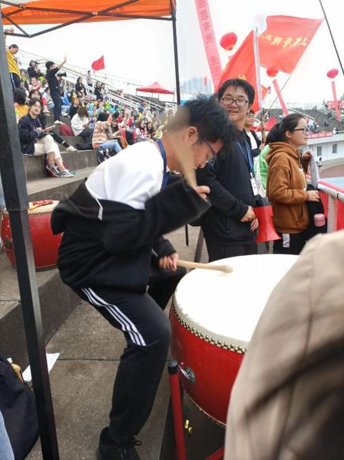 比赛进行时,鼓声雷动,院旗飞舞。志愿者们跟随鼓声的韵律,用力挥舞着手中的拍手器,大声喊出“统数加油”“统数必胜”,为赛场上奋力奔跑的运动员们提供了源源不断的精神力量。随着运动员冲向终点,志愿者的鼓声也愈加激昂,更是有“铁剂突出刀枪鸣”之感。