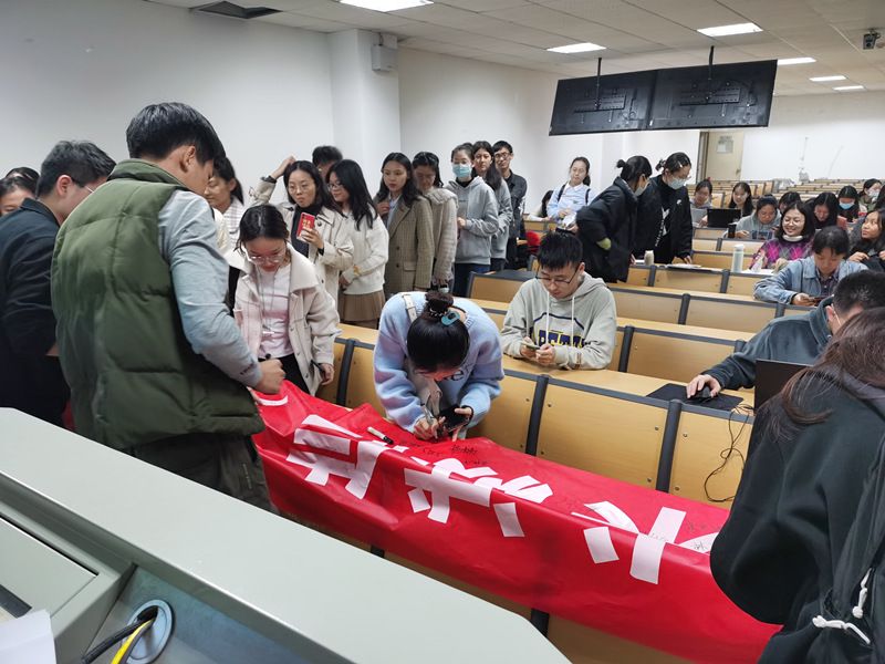 最后,同学们自发地在宣传横幅上签字,做出“同守学术诚信,共建严谨学风”的承诺,并纷纷表示会努力成为优良学风的践行者,从而推动学风建设水平的提高。