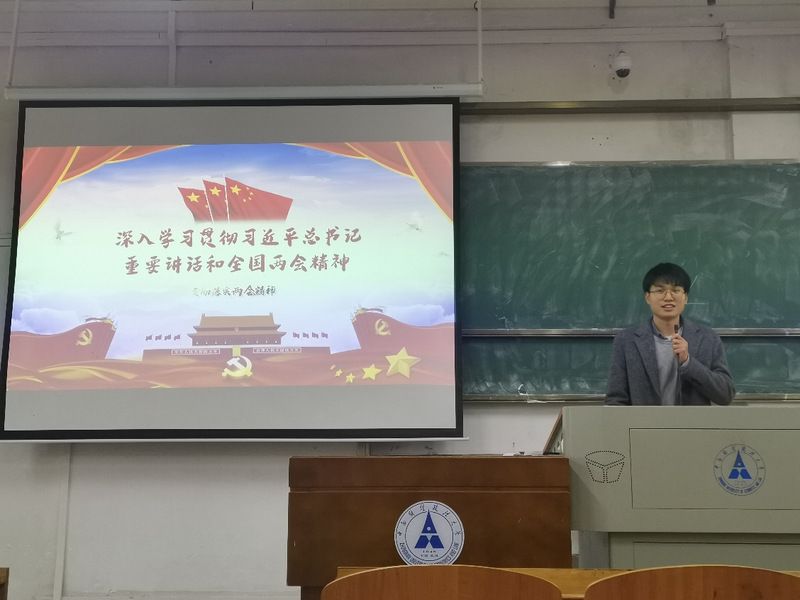 最后,陈盈老师强调要把深入学习贯彻习近平总书记重要讲话和全国两会精神作为当前重大政治任务,并引导同学们思考作为新时代青年如何贯彻践行弘扬党的伟大精神。