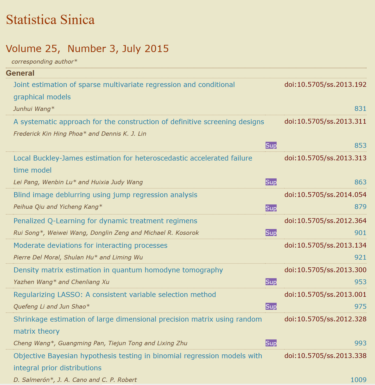 【学术期刊】《Statistica Sinica》,2015年第3期。