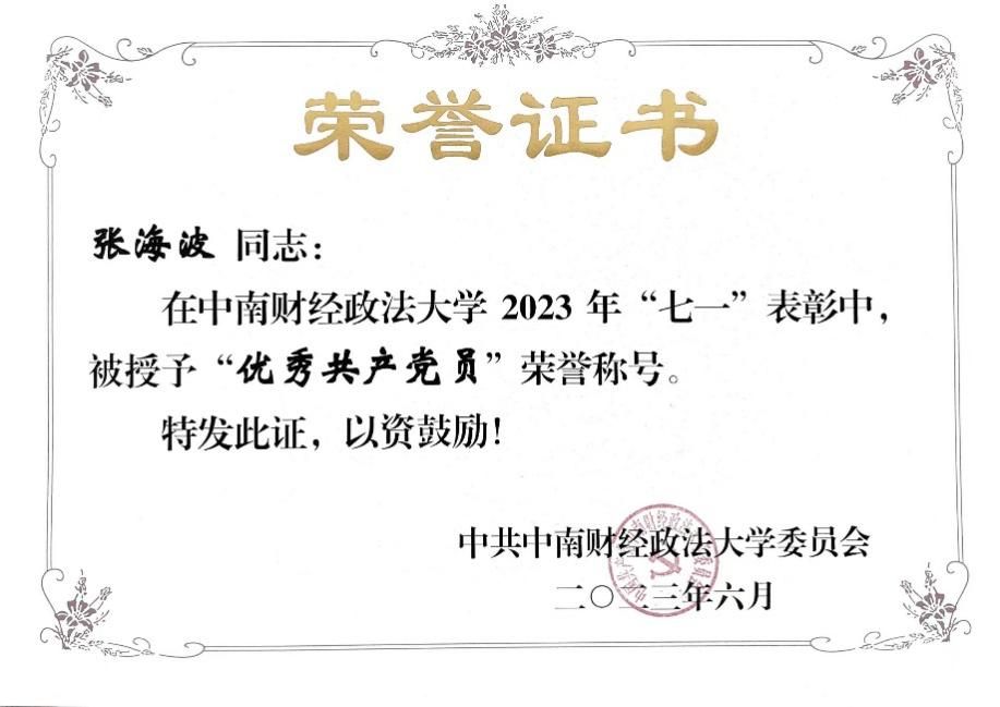 统计与数学学院党委在本次“七一”表彰中荣获5项荣誉。统计学系党支部张海波老师、2021级研究生党支部博士生曾炬被授予“优秀共产党员”称号,院党委委员、大学数学教研中心党支部书记杨皓老师被授予“优秀党务工作者”称号,统计学系党支部、2020级本科生党支部获“先进基层党组织”称号。