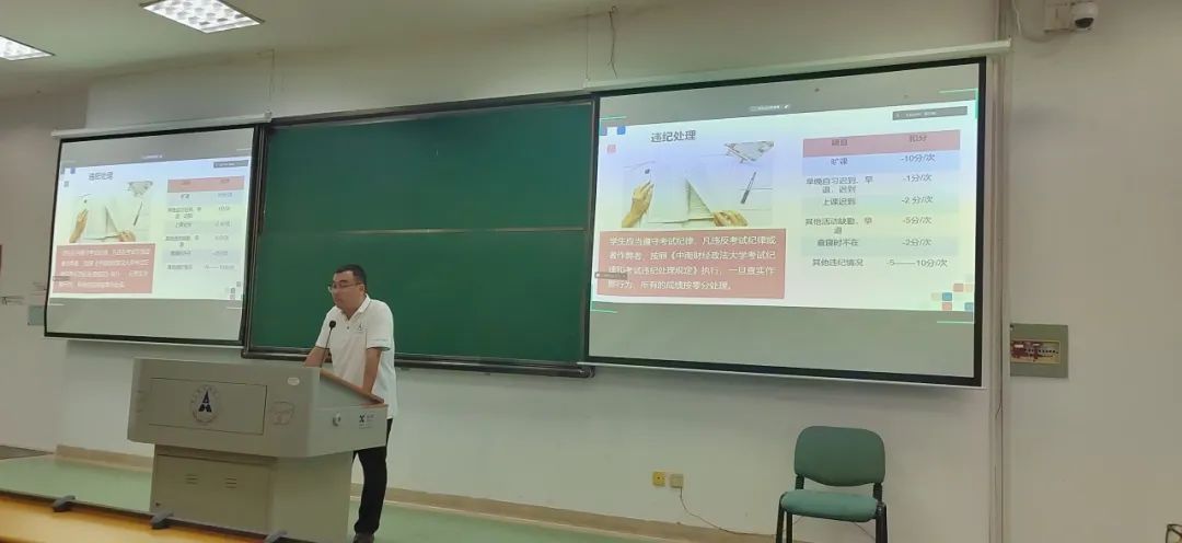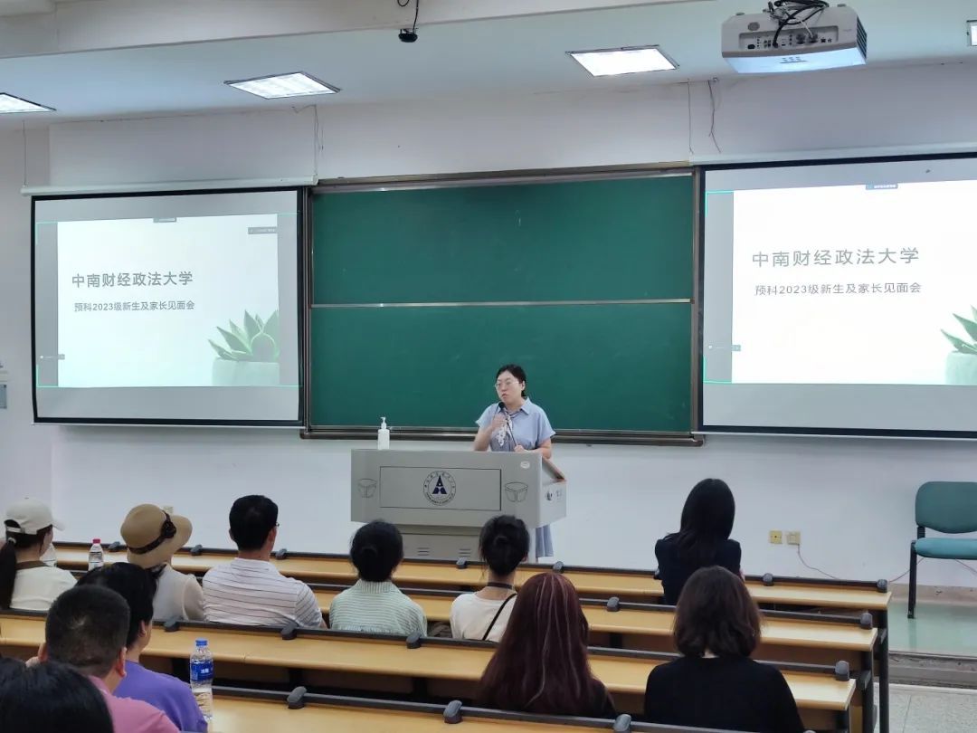 预科对预科课表及上课模式进行了说明,表达了学校学院对于预科生的关心与用心。中心主任熊波代表统计与数学学院预科中心对2023级预科新生和家长的到来表示热烈的欢迎。首先熊老师对预科一年的培养方案,预科结业、延长学制和退学,如何选专业问题做出概述,强调了预科一年对于学生的重要性和必要性。其次,预科一班班主任王琦老师就预科一年成绩计算方式,选专业规则,奖学金评选等细致问题进行了解释,详细说明了总成绩计算公式,规则并加以举例。