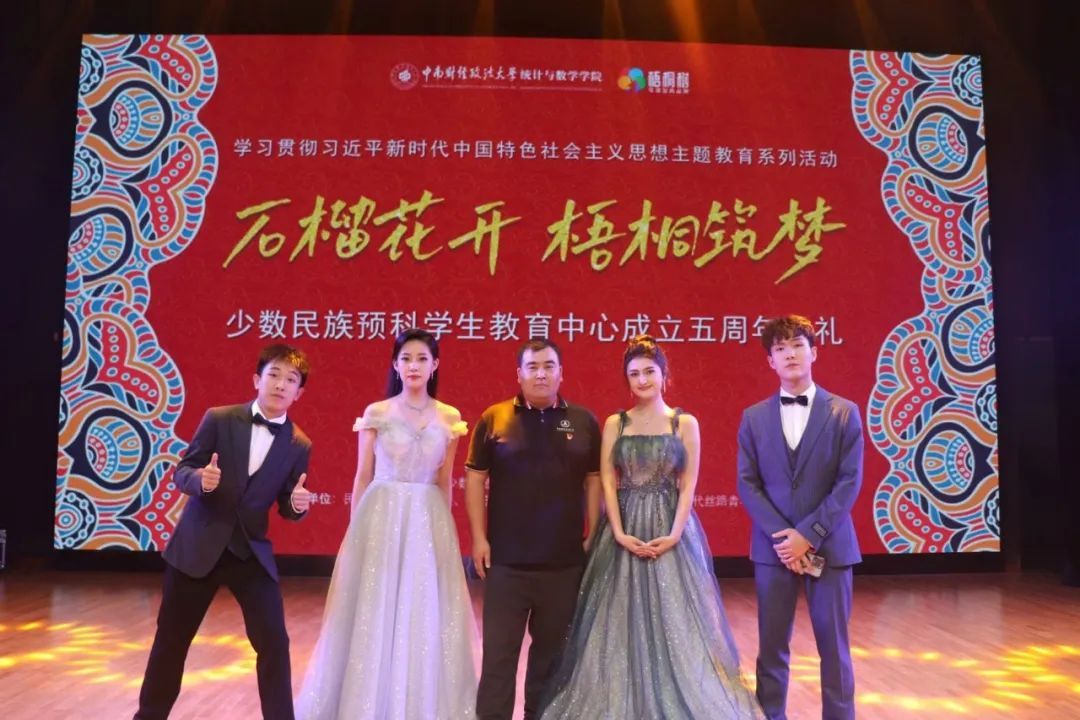 为进一步开展学习贯彻习近平新时代中国特色社会主义思想主题教育、深入学习宣传贯彻党的二十大精神,5月26日晚,统计与数学学院“石榴花开 梧桐筑梦”少数民族预科学生教育中心成立五周年典礼在南湖校区艺体中心音乐厅隆重举行。党委学生工作部部长余小朋,副部长刘晓燕,工商管理学院辅导员、校团委兼职副书记、全国高校最美辅导员尼加提•艾买提,统计与数学学院党委书记梁娜,少数民族预科学生教育中心副主任熊波,班主任陆路、程水林、李娟、王琦、孟笑莹,辅导员艾合买提•吐尔地,美美晓南民族团结教育工作室的全体老师以及统计与数学学院的全体学办辅导员们出席本次活动。
