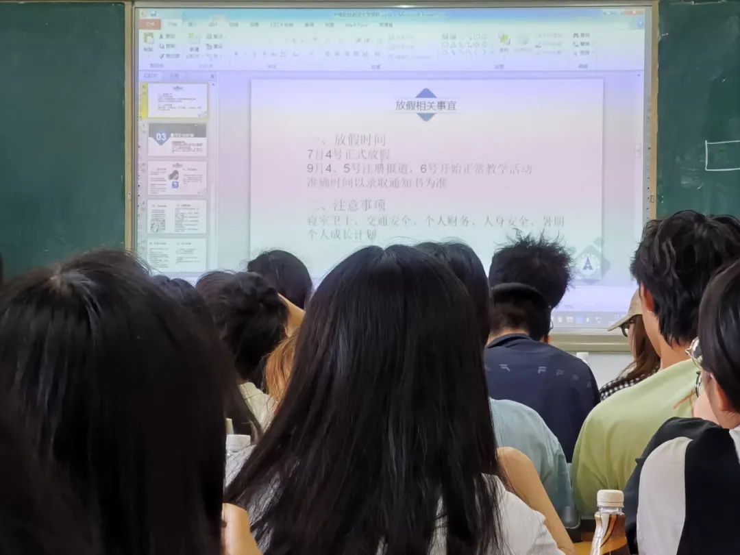 2021年6月24日上午十一点,大家纷纷放下手中的笔露出了或满意或沮丧的表情,不管考试成绩怎么样,我们总算是结束了最后一门考试马上就要毕业了。买提老师安排我们在文津楼704进行一次最后的班会,也是对接下来关于毕业相关事宜的安排。