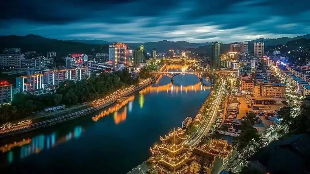 记忆是人类珍贵的宝藏。这座藏在山里面的小城,夜幕降临时,物换星移,星移斗转,江中倒影安然烂漫,江畔两岸灯光弥漫。