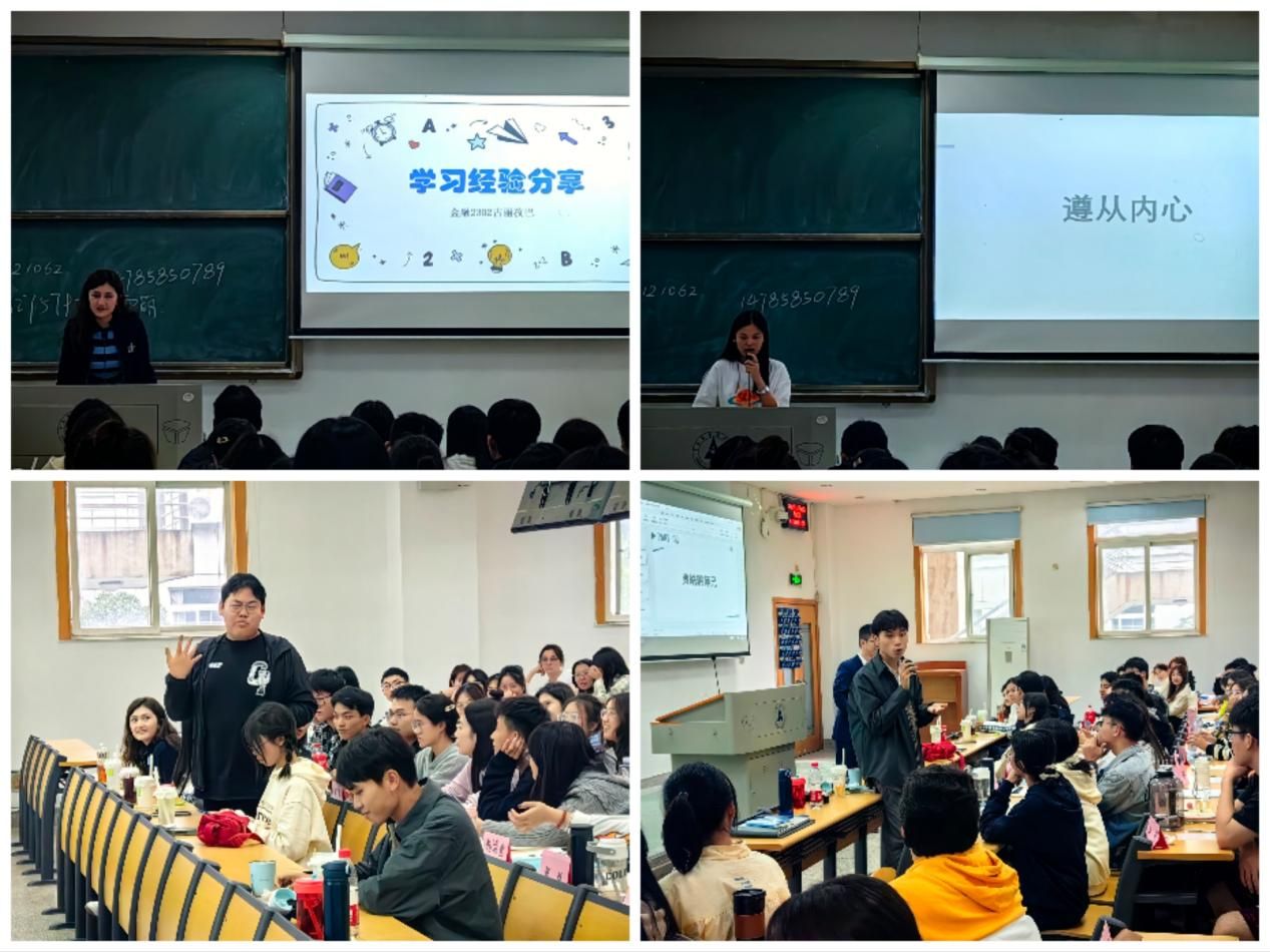 本次活动邀请到金融学院黄皓鹏,古丽孜巴,财税学院罗润佳,会计学院邓瑶,田雪萌和法学院陆润琪等师兄师姐进行经验分享。他们从自身经历出发,就学习经验,就读经历,心得体会等方面进行分享。师兄师姐们尤其强调了同学们应端正学习态度,重视课堂纪律,积极参与课程,自主进行课前预习及课后研习等。同学们纷纷表示师兄师姐的分享很具有普适性和指导性,为期中考试备考应试提供了新思路,准方向。晚自习时,同学们的学习状态变得更加专注,本次大会可谓是取得了立竿见影的效果。长此以往,相信同学们一定可以从容迎接期中考试的挑战,取得满意的成绩。