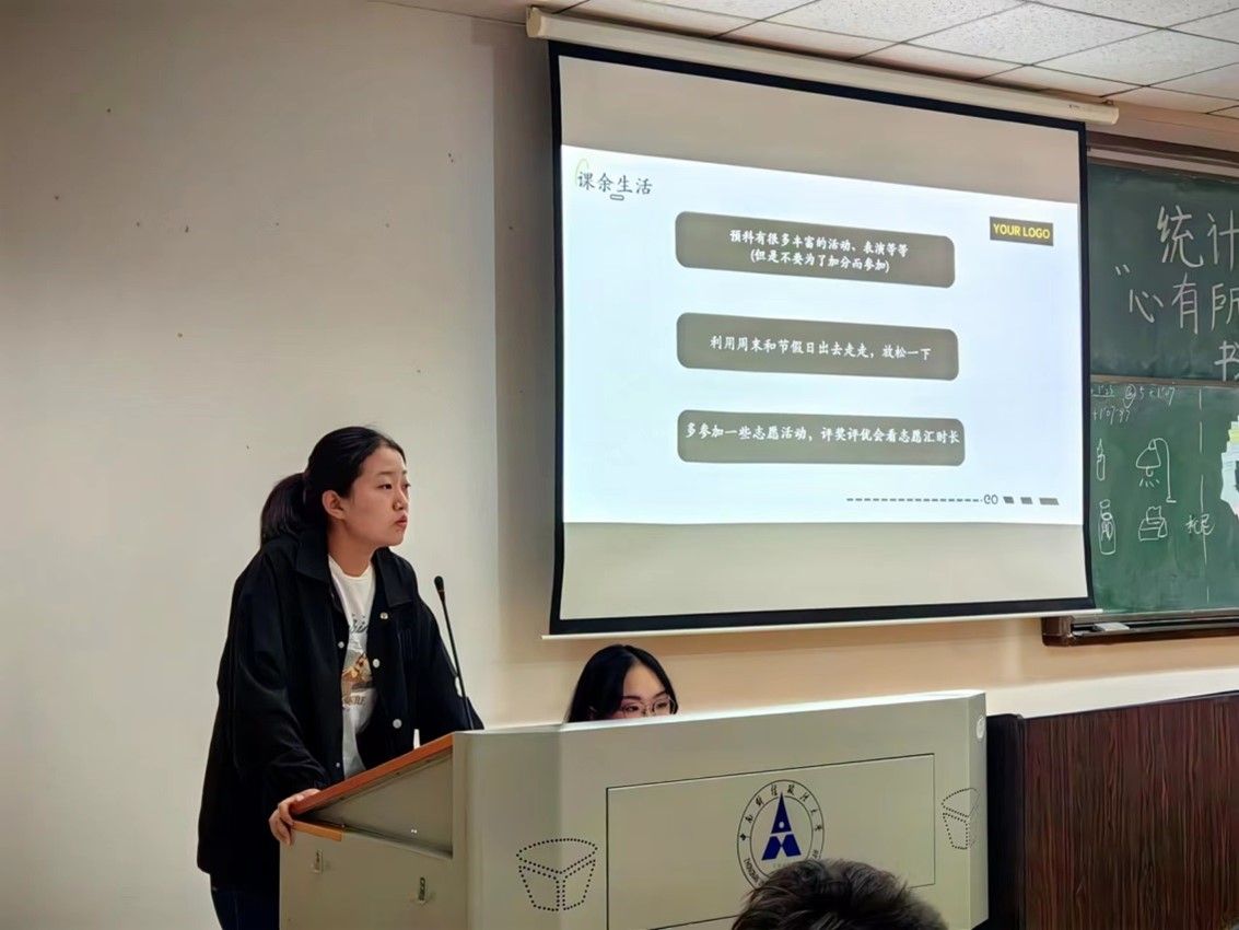 而后,22级预科同学刘歆妍作为师姐从专业选择、学生工作和课余生活三方面分享了自己的经验和建议,她介绍了预科同学选择专业的常见误区和了解专业的方法,并以自己和其他师兄师姐为例,鼓励预科同学们不以功利的分数为目的,而是以自己的意愿为导向,勇敢地去突破自己、丰富自己,在自己的领域闪闪发光。