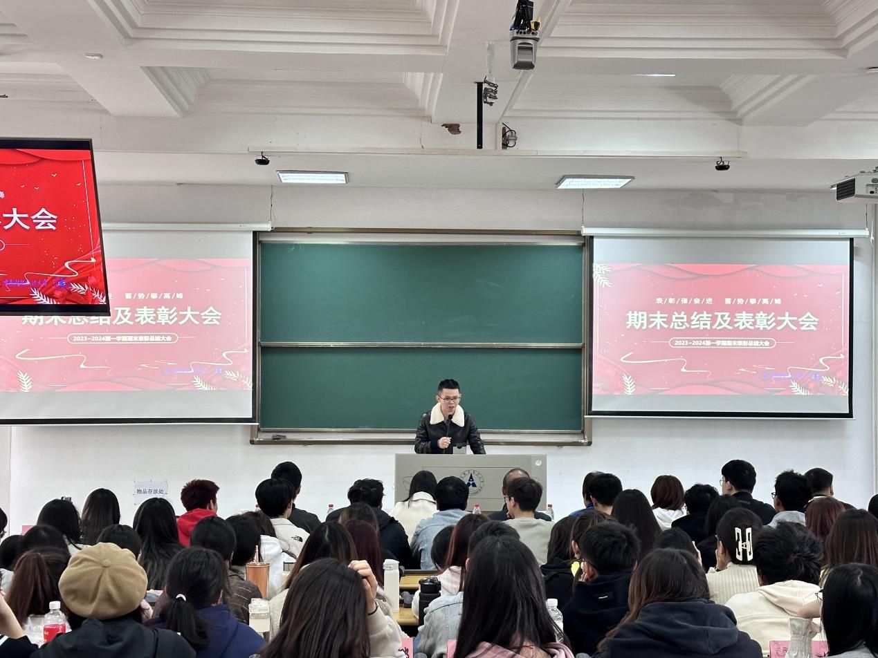 (通讯员:文艺筑)2024年3月14日下午两点,首义校区党校校长朱虹、校党委学生工作部汪梅芳老师、统计与数学学院预科中心辅导员艾合买提·吐尔地老师、胡坤老师、王琦老师、孟笑盈老师及2023级全体预科同学在文津301进行第一学期期末总结表彰大会。活动开始,首先由王琦老师介绍本次活动流程,分别有嘉宾介绍、领导致辞、宣读表彰决定、颁奖仪式、学生代表发言五个部分。大会由预科一班班主任王琦老师主持。