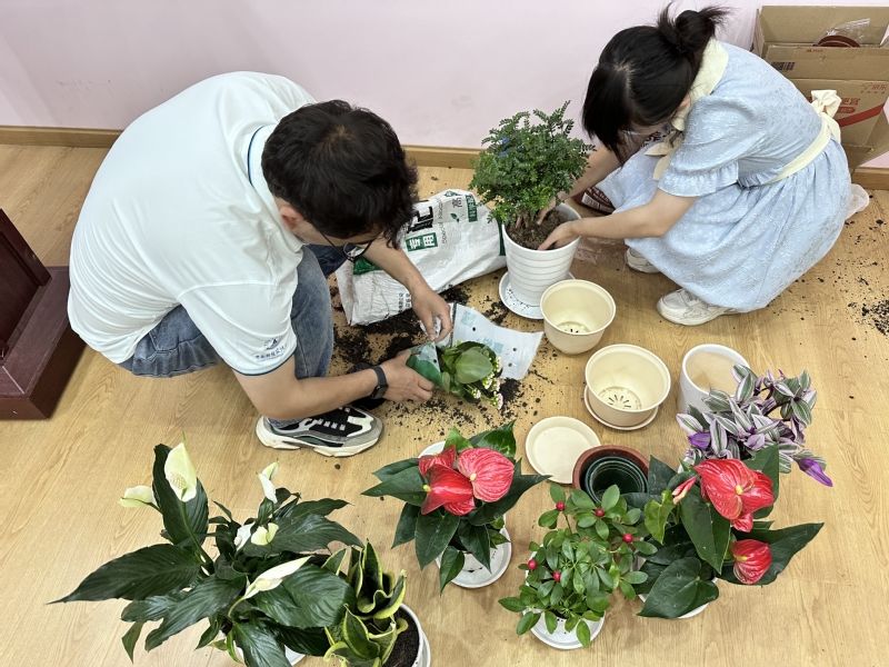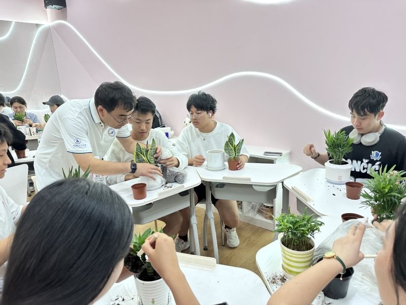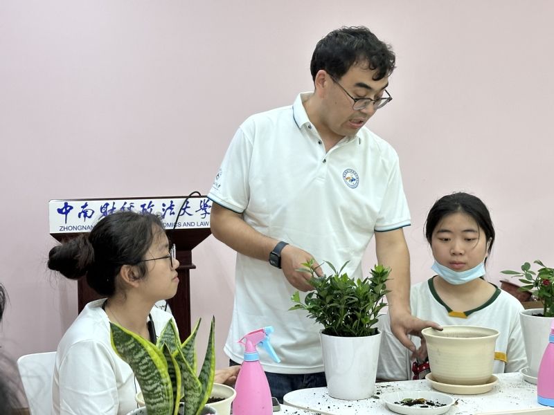 此次活动特别邀请了经验丰富的买提老师进行线下指导,教授同学们如何种植太阳花以及盆栽移植的技巧。买提老师不仅分享了绿植的种植知识,还传授了日常养护的秘诀,让同学们能够更好地 照顾自己的小绿植。