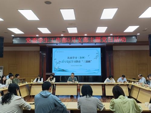 (通讯员:舒鑫才 张怡)为进一步深入学习习近平总书记关于严明党的组织纪律、廉洁纪律最新重要讲话和重要指示批示精神,推动党纪学习教育走深走实,5月31日上午,党委学生工作部党支部与统计与数学学院2021级本科生党支部在文潭楼四楼报告厅结对开展“严明组织纪律和廉洁纪律,争做忠诚干净担当的表率”主题党日活动。党委学生工作部党支部全体党员、统计与数学学院2021级本科生党支部全体党员参加学习,活动由党委学生工作部党支部书记王前哨部长主持。