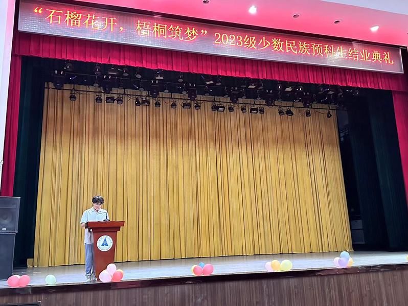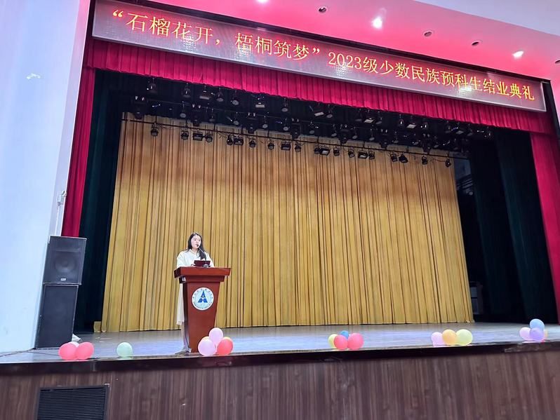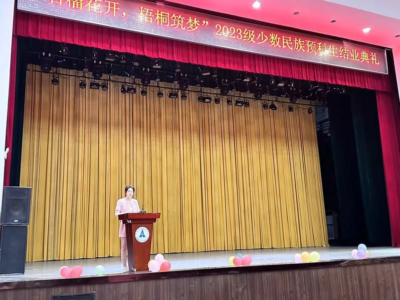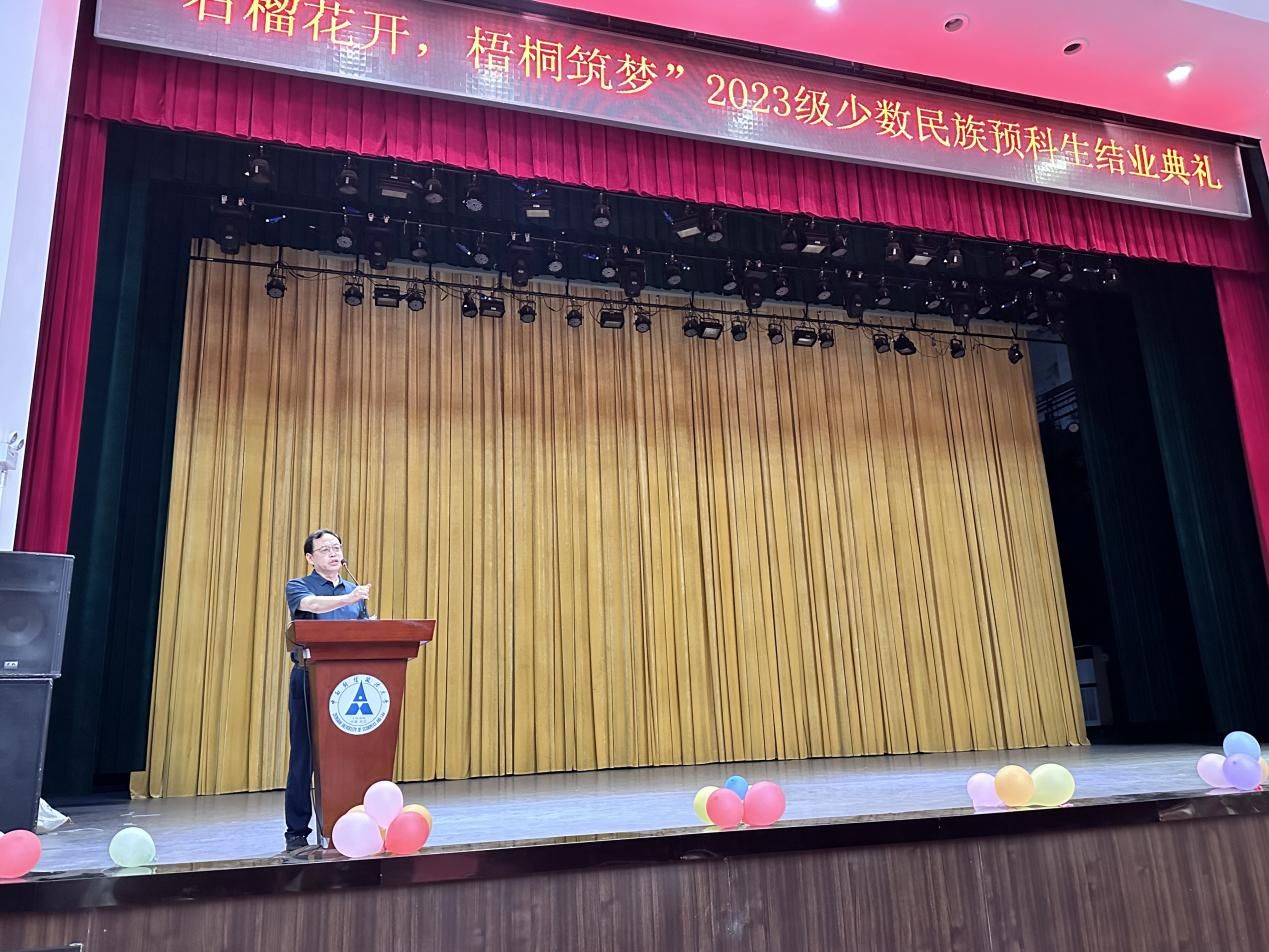 统计与数学学院副院长、少数民族预科学生教育中心主任常金华发表致辞。他对同学们在预科阶段的努力和取得的成绩表示了赞扬和祝贺,并鼓励同学们在未来的学习生活中继续努力,不断追求卓越。