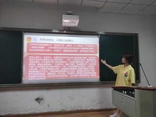 活动当天,同学们首先聚焦“安全生产月”的主题,通过观看安全教育视频、分享安全事故案例、开展安全知识竞赛等多种形式,深入学习贯彻习近平总书记关于安全生产的重要讲话精神。大家深刻认识到安全生产无小事,必须始终坚持人民至上、生命至上的原则,时刻保持高度警觉,确保各项安全措施落到实处。同时,同学们还积极参与“绿色出行”倡议,以实际行动支持绿色发展,为建设美丽中国贡献青春力量。在“倡导绿色发展,美丽中国青春行”的环节中,同学们通过学习贯彻习近平生态文明思想的核心要义,了解到绿色发展对于建设美丽中国的重要意义。随着本学期课程的结束,期末考试临近,为此,团支书特开展了以“勤学苦读磨利剑,诚信应考亮真章”为主题的诚信应考教育活动。同学们通过击鼓传画、知识挑战赛等互动游戏,强化所学内容,增进彼此友谊与默契,在轻松愉快的氛图1 安全专题 中,树立了正确的考试观念。在团支书的引导下,同学们还就如何提升学习效率、备考策略等问题进行了深入交流讨论,共同促进班级学风建设。