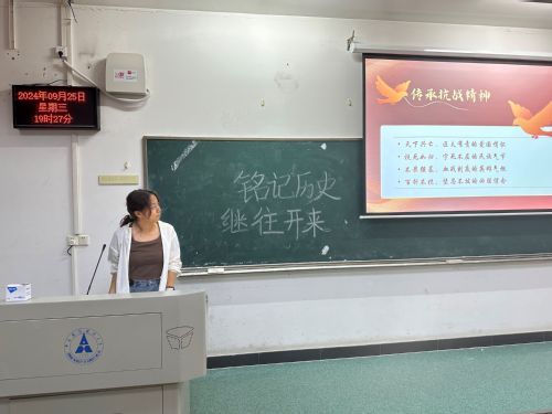 (通讯员:田鑫妍)9月3日是中国人民抗日战争胜利纪念日。为学习贯彻习近平总书记关于伟大抗战精神的一系列重要论述,引导加强同学们对伟大抗战精神的学习和体验,铭记历史、缅怀先烈、珍视和平,积极投身于中国式现代化建设之中,国统2301团支部于文波楼208教室,通过理论学习与观影活动的方式,积极开展了“铭记历史,继往开来”9月主题团日活动。