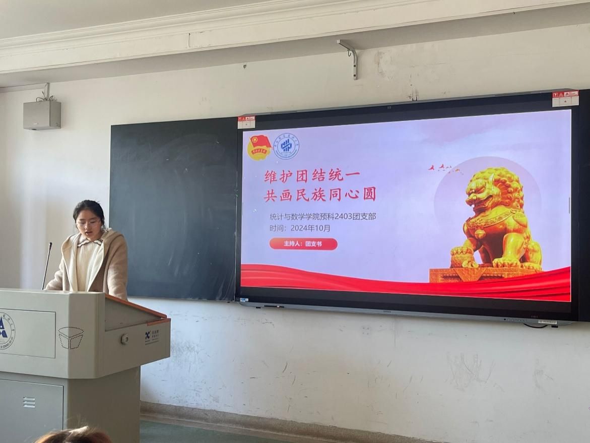 (通讯员:依丽米努尔)预科2403班于10月24号成功开展了“维护团结统一,共画民族同心圆”主题团日活动,团支书刘思彤主持活动,2403班全体预科同学参与。本次活动旨在深化同学们对民族团结重要性地认知,促进班级内各民族同学交流互鉴。